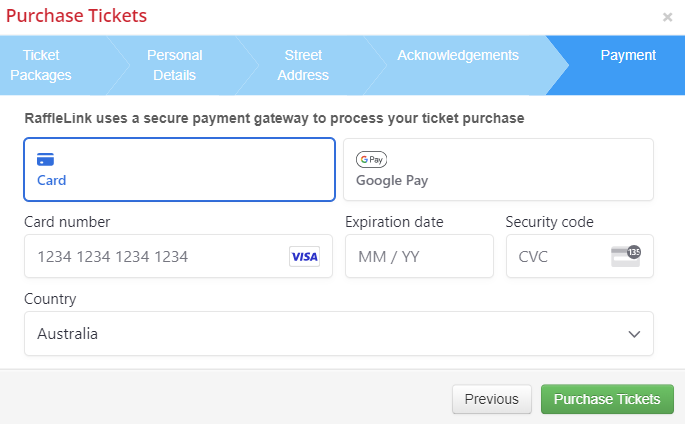 #### [Additional Details](https://help.rafflelink.com.au/getting-started/registration-guide/raffle-details-step-5/customizing-my-payment-form-optional)